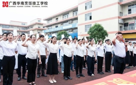 4月23日,广西华南烹饪技工学校 教学质量季提升活动动员大会 盛大启幕!全体师生齐聚一堂,共同吹响教学质量提升的冲锋号角,一场关于匠心传承与品质升级的征程正式启航。 01 锚定目标,共赴卓越 大会伊始,我校校长