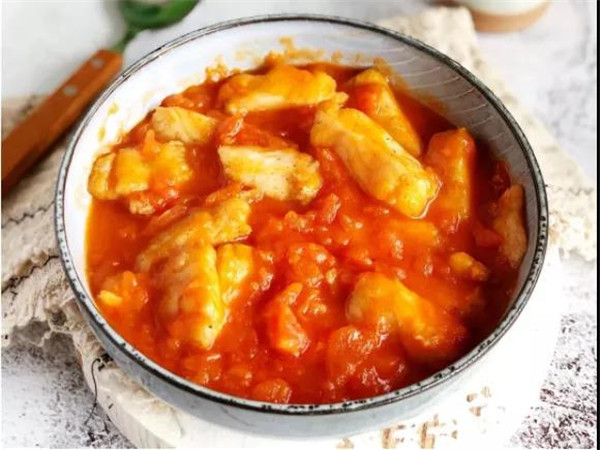 巴沙鱼1条、番茄1个、料酒2勺、黑胡椒粉适量、盐少量、油适量、味极鲜2勺、蚝油1勺、蕃茄酱3勺、清水适量、盐少量