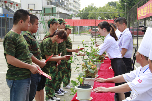 广西华南烹饪学校新生经过一段时间的军训,终于开始了汇演。站对列、走步等,已经有模有样。通过军训,同学们显得成熟干练了很多,烈日当空,口号响亮,在操场上形成了一道亮丽的风景。同时,通过军训,同学们也提高了自律意识,增强了团队精神,为今后的学习生活打下一个坚实的基础。军训汇演结束,学校领导表彰了一些优秀标兵,朱伟主任发表了总结发言。