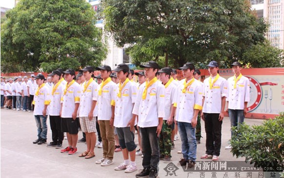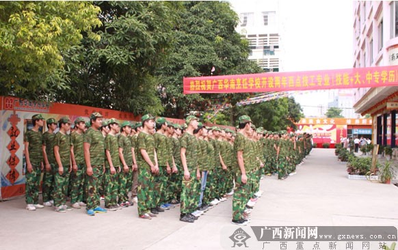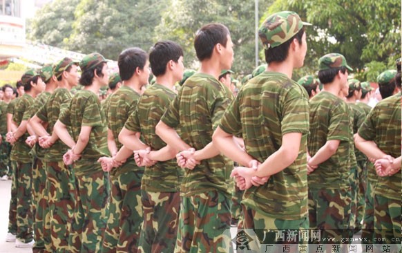 广西华南烹饪学校举办2012新生军训汇演现场。
