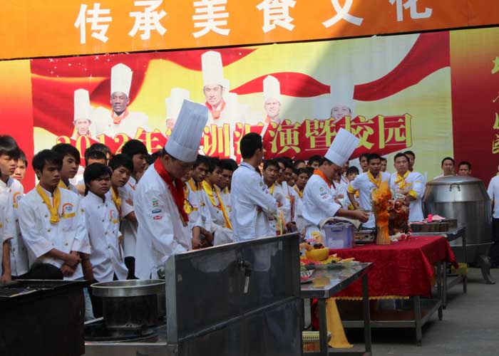 近段,广西华南烹饪学校进行了晚班开班,分别开有烧烤班,糖艺班、雕刻班、烧腊班、拼盘班等。开班仪式上华南老师各自展示了自己的绝活,现场不仅吸引了大量学生的围观,而且也提高了学生和老师之间的互动,对美食有更一步的了解,同时也丰富了学生的学校生活。