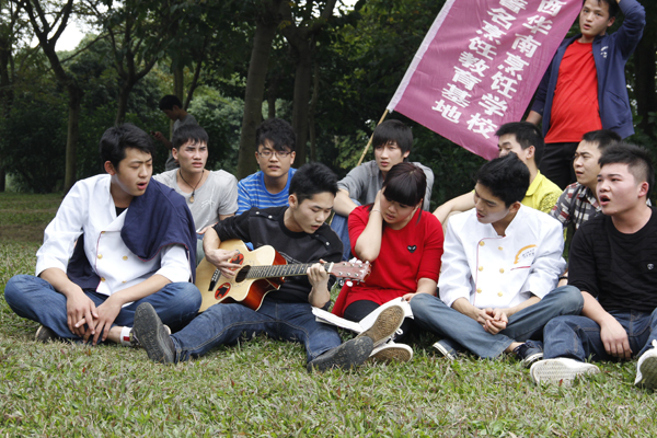 休息瞬间,学子们深情唱起了羽泉的《奔跑》 心中满怀憧憬和希望