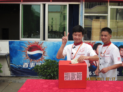 7月4日早上,我校响应南宁市西乡塘区政府的号召,在全国第二十一个“助残日”到来之际在烹饪校区食堂前操场举行了“助残捐款”仪式。全校师生参加了此次活动,在仪式上首先由校长向学生进行了助残教育,然后学生代表作了表态发言。其后在全校领导的带领下进行了捐款活动。本次活动的所有捐款将交付南宁市西乡塘区政府从事特教事业。