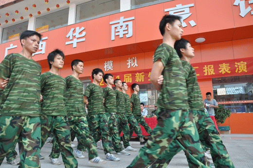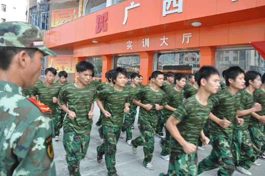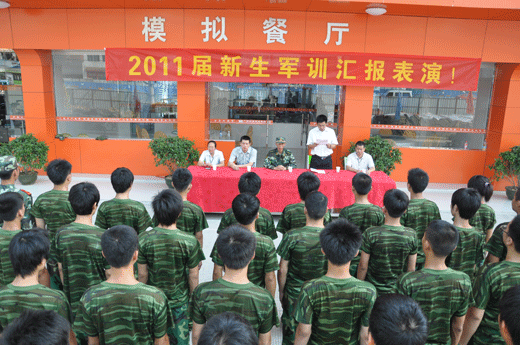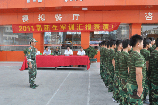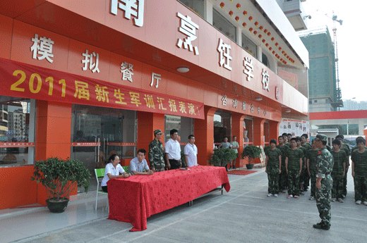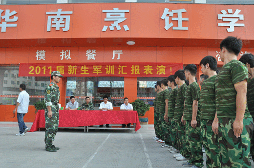 7月,激情飞扬,是热血的,是朝气的。华南烹饪学校2011年新学员军训汇演在7月29日举行。广西华南厨师烹饪学校负责人朱伟、教务处主任万玲、实操大师黄盛等出席了此次汇演。正步走、口号操练、队列前进等精彩表演让现场观众应接不暇,大呼震撼。这宣告了为期两周的新生军事课教学训练终于进入了尾声。