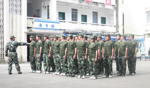 2011年8月1日上午,又一个略带丝丝凉风却仍稍炎热的夏日,广西华南烹饪学校大厨精英班的同学们迎来了入学的第一次军训。