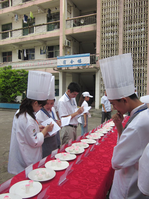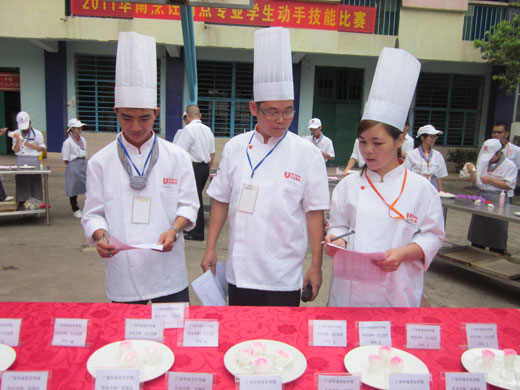 我校将在2011年8月3日(星期三)上午9点在五栋实操楼前面操场举行首届面点专业技能比赛,此次比赛会由西点速成班、西点半年班、裱花班和中点班四个班同学参加。