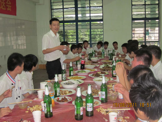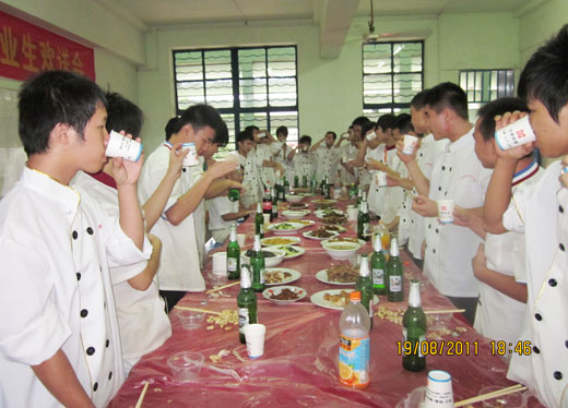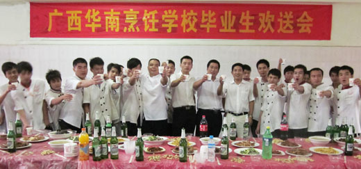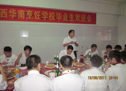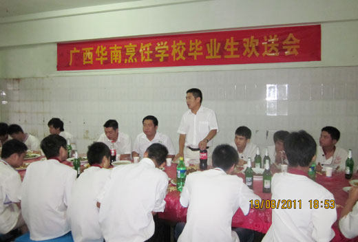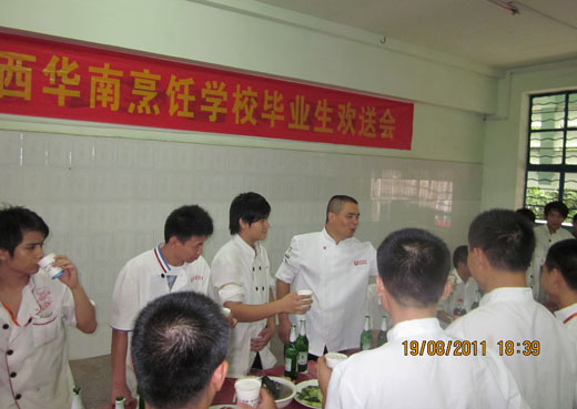 希望他们作为华南烹饪学校的毕业生,要在工作中努力做到爱岗敬业,为师弟师妹们带个好头。