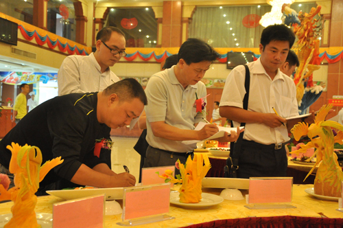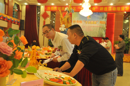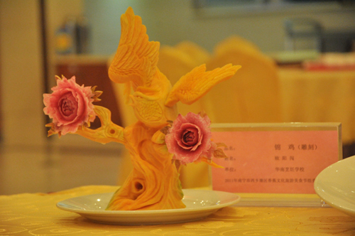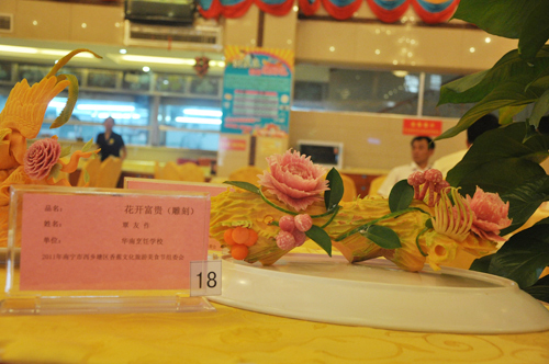 10月21日,作为南宁市“两会一节”系列文体旅游活动重要组成部分的“十大美食”评选活动,在南宁肥仔美食广场隆重举行的。活动现场展示了各种各样的雕刻、拼盘、汤类等美食作品。在广西华南烹饪学校推选的作品中,大多展现了具有独具特色、和富有创新设计的特色;选料充分体现原生态、绿色有机。进一步的传播弘扬了美食文化,突出美食文化特色。学员们努力打造的雕刻、拼盘等作品,在此次评选中获得了良好的成绩。