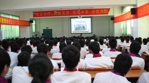 为加强学校与企业间的合作,不断满足企业人才需求,11月15日上午我校与市内11家餐饮企业举行座谈会,共同研究和探讨职业教育与市场人才需求接轨等问题,当天还举行了隆重的互赠牌匾仪式,学校从此成为企业的“人才培养与储备基地”,企业成为学校的“就业与实训基地”,学校努力为华南学生创造良好的学习和实践的平台,为社会培养更多实用的技能人才,有效的促进职业教育与地方经济的发展。