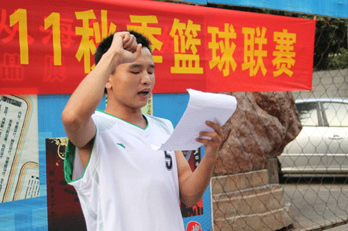 2011广西华南烹饪学校举行秋季篮球比赛开幕布仪式现场