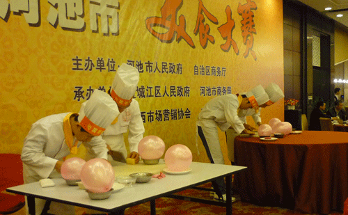 大赛以“河池地域民俗特色美食”为主题,重点推介河池美食,活跃河池餐饮消费市场,挖掘河池美食文化。大赛吸引了数十家旅游、饮食方面的行家里手,充分展示出河池旅游和美食的强烈吸引力与广阔发展前景,对弘扬河池美食文化、挖掘餐饮文化内涵、繁荣旅游文化具有重要意义。此次大赛评出了河池的“十大名菜”、“十大名小吃”、“十大养生菜肴”称号。
