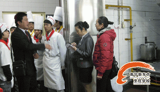 黄助理向我校学生介绍厨房详情