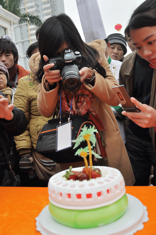 广西电台的美女记者好像也被这精美的蛋糕吸引注了哦