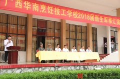 8月17日下午三点,广西华南烹饪技工学校2018年秋季新生军训会操表演在中尧校区操场上举行。 会操活动现场同学们肃立在操场上,老师和教官们分别坐在主席台上观看同学们的会操表演。 阅兵式上,响彻云霄的传承美食文