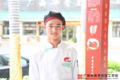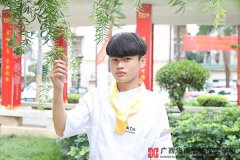 清秀的浓眉下,一双深邃的眼眸泛着链漪,腼腆地一笑更是给他阳光的形象增添了一抹帅气。这位97后高颜值小鲜肉,踏着坚定的步伐,来到了广西华南烹饪技工学校。 在18岁他的心中,成为一名厨师,不是一天、一个月、一