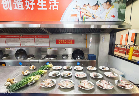 - 主干课程:粤菜、湘菜、川菜、桂菜、(四大菜系经典名菜)特色菜、创新菜、网红菜、特色小吃、水果接盘、卤味、西点、西餐、成本核算、宴席设计、总计260道经典名菜(如:脆皮乳鸽、鲍鱼绘鱼肚、霸王别姬、澳洲龙虾、刺身三文鱼、烤鸭等)、60道特色小吃、20个食品雕刻、10个不同档次宴席。